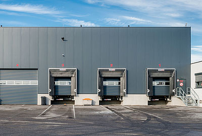 Die Integration intelligenter Gebäudetechnik gewährleistet wirtschaftliche Lager- und Transportverkettungen bis hin zu den Schnittstellen für Verladetechnik zwischen Gebäude und LKW.